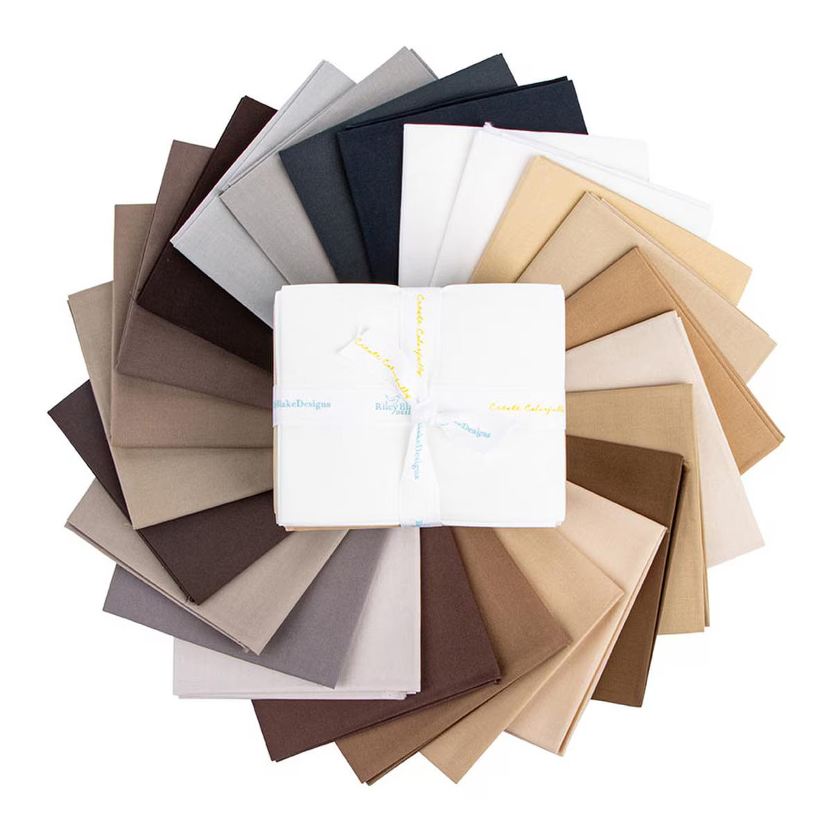 This Fat Quarter precut bundle includes 24 pieces from the Riley Blake Designs Confetti Cotton™ collection. Colors included are Cotton, Cloud, Sesame, Latte, Trail, Echo, Eggnog, Linen, Cappuccino, Pewter, Pebble, Cobblestone, Biscuit, Palomino, Brown Sugar, Rustic, Milk Can, Blackboard, Tea Dye, Chestnut, Raisin, Truffle, Espresso, and Carbon.